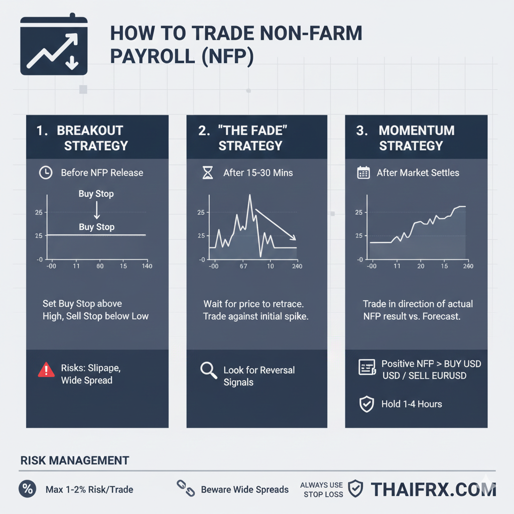 นี่คือ 3 กลยุทธ์ยอดนิยมที่นักเทรดมักใช้ในการรับมือกับข่าว NFP: