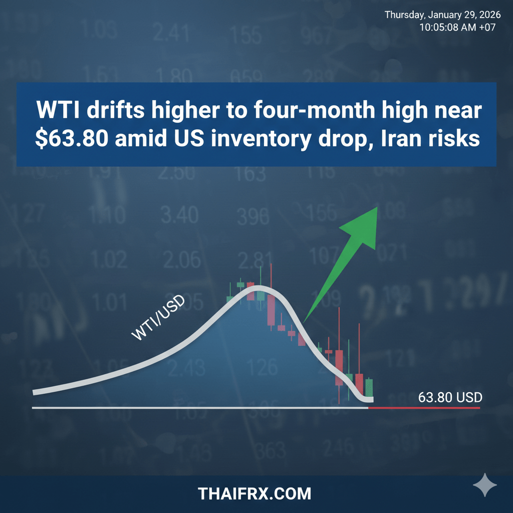 ราคาปัจจุบัน: ราคาน้ำมันดิบ WTI ซื้อขายอยู่ที่ประมาณ 63.68 – 63.80 ดอลลาร์ต่อบาร์เรล