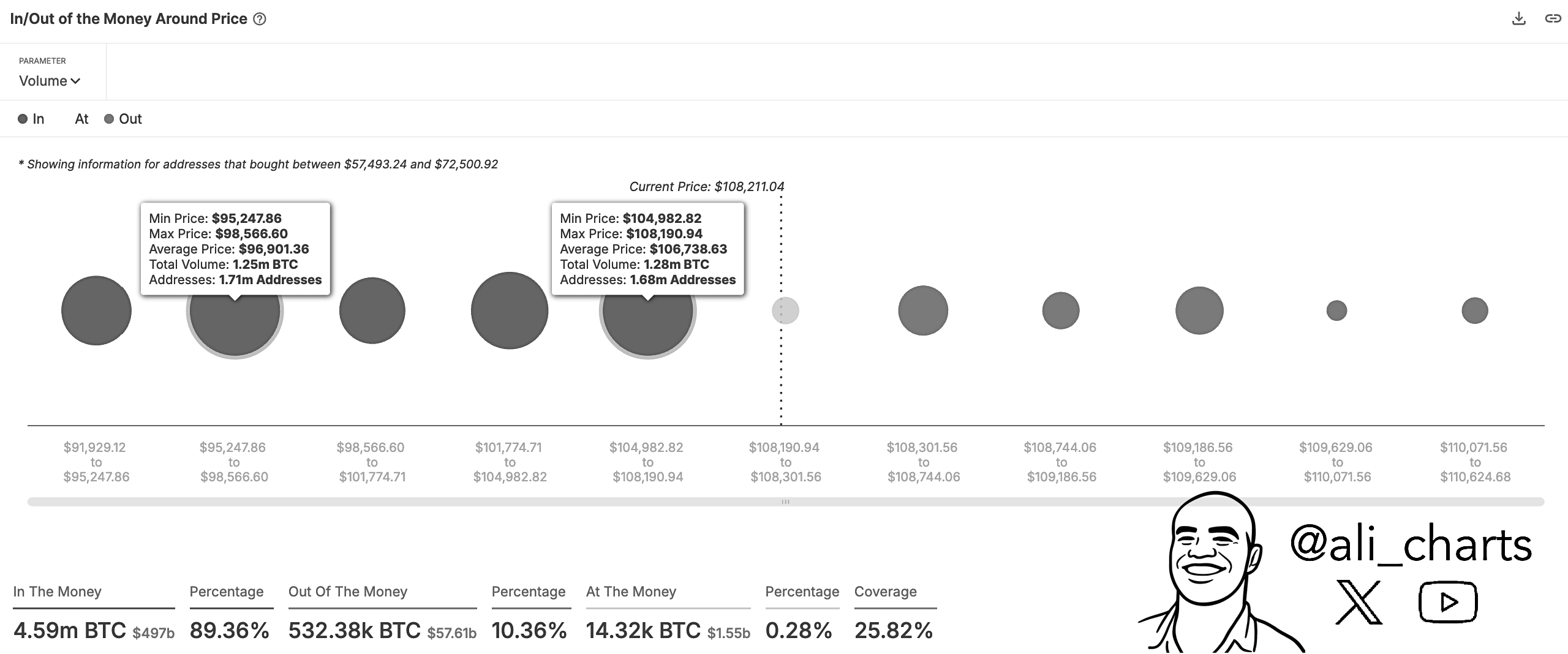 ในขณะเดียวกันมีเพียง 10.36% ของที่อยู่ที่“ หมดเงิน” เน้นความเสี่ยงที่ค่อนข้างต่ำของการขายที่น่าตื่นตระหนกอย่างกว้างขวางเว้นแต่ว่า Bitcoin จะต่ำกว่าระดับวิกฤตเหล่านี้ที่เน้นด้านบน ในเวลากด Cryptocurrency พรีเมียร์ยังคงทำการซื้อขายที่ $ 108,154 ซึ่งสะท้อนถึงกำไร 0.24% ในวันที่ผ่านมา ในขณะเดียวกันปริมาณการซื้อขายรายวันลดลง 27.09% และมีมูลค่า 31.04 พันล้านดอลลาร์