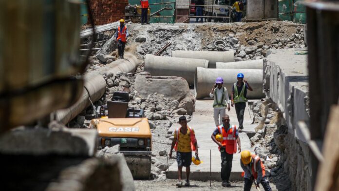 คนงานก่อสร้างในเมืองมุมไบ ประเทศอินเดีย วันที่ 5 มิถุนายน 2024