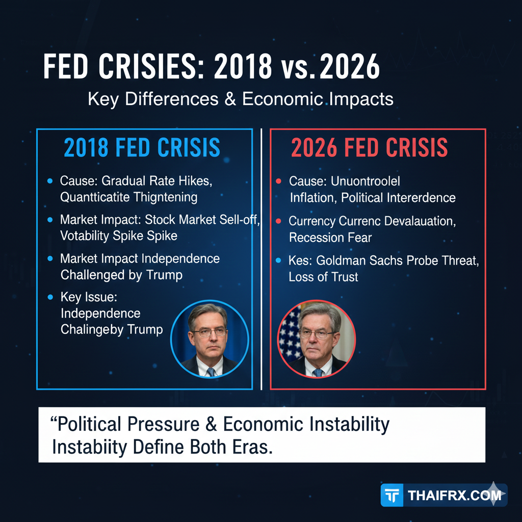 ความแตกต่างระหว่าง “วิกฤตความขัดแย้ง” ระหว่างรัฐบาลทรัมป์และ Fed ในปี 2018 และปี 2026 มีความแตกต่างกันอย่างสิ้นเชิงในด้าน “ความรุนแรง” และ “เครื่องมือที่ใช้” โดยปี 2026 นี้ถูกมองว่าเป็น “จุดแตกหัก” ที่รุนแรงที่สุดในประวัติศาสตร์ธนาคารกลางสหรัฐฯ ครับ
