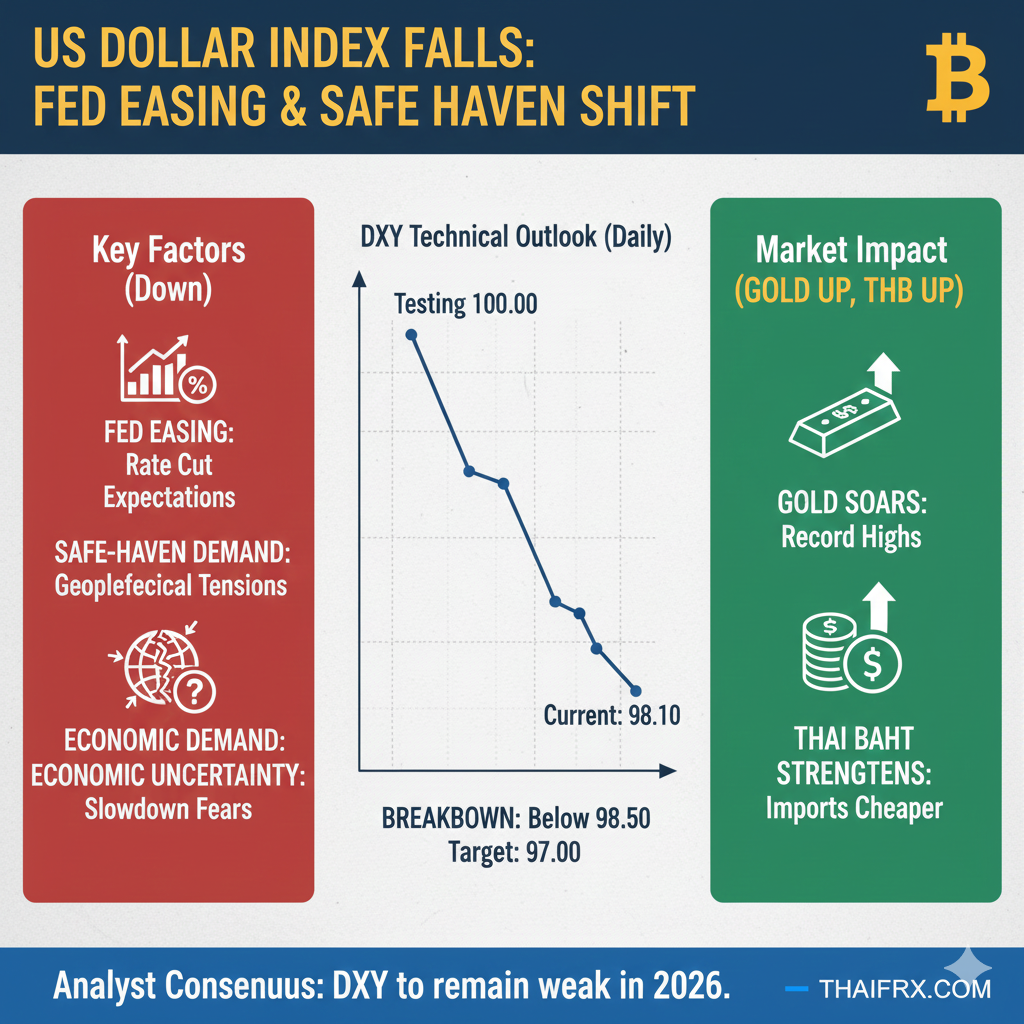 การที่ดัชนีดอลลาร์อ่อนค่าลง (DXY ร่วง) ส่งผลโดยตรงต่อไทยดังนี้: