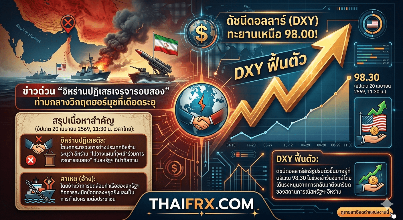 ดัชนีดอลลาร์ (DXY) ทะยานเหนือ 98.00! รับข่าวด่วน “อิหร่านปฏิเสธเจรจารอบสอง” ท่ามกลางวิกฤตฮอร์มุซที่เดือดระอุ