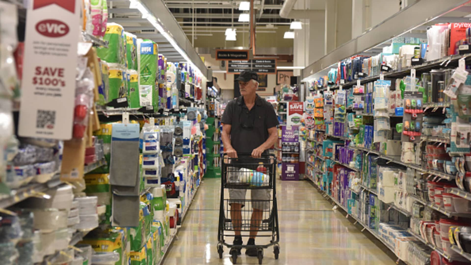 ลูกค้ากำลังจับจ่ายซื้อของที่ซูเปอร์มาร์เก็ตเมื่อวันที่ 14 สิงหาคม พ.ศ. 2024 ในเมืองอาร์ลิงตัน รัฐเวอร์จิเนีย