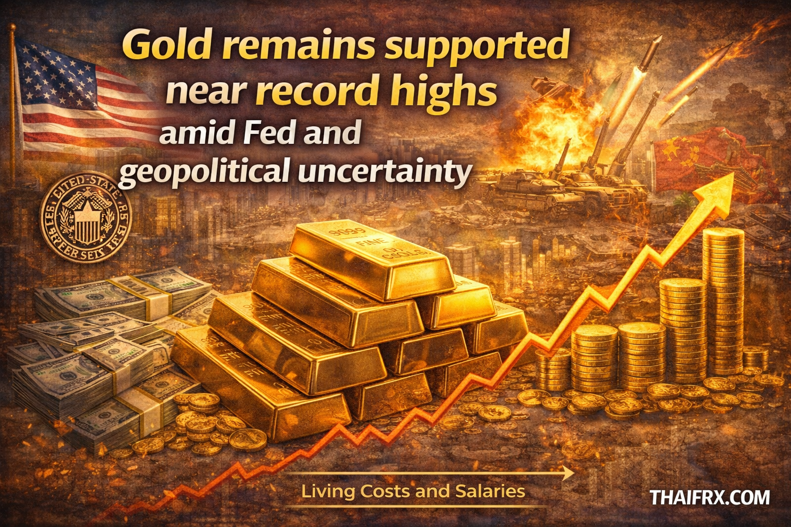 ทองคำยังคงได้รับแรงหนุนใกล้ระดับสูงสุดเป็นประวัติการณ์ ท่ามกลางความไม่แน่นอนจากเฟดและสถานการณ์ภูมิรัฐศาสตร์