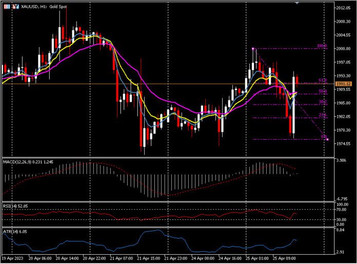 ราคาทองคำปรับฐานเป็น 1,975 ดอลลาร์ โซนเนื่องจากดัชนีดอลลาร์เคลื่อนไหวสูงขึ้นก่อนหน้านี้ ก่อนที่จะตีกลับจากรายงานที่ไม่ใช่ภาคการผลิตที่อ่อนแอจาก ฟิลลี่ เฟด ที่แสดงการลดลงอย่างชัดเจนถึง -22.8 ขัดต่อ -12.8 ครั้งล่าสุดและมีนาคมใบอนุญาตที่อยู่อาศัยของสหรัฐอเมริกาได้รับการแก้ไขสูงขึ้นเป็น 1.430 ล้าน จาก 1.413 ล้าน. ทองคำแท่งมีแนวโน้มลดลงอย่างค่อยเป็นค่อยไป หลังจากแตะระดับสูงสุดในรอบ 13 เดือนที่ $2,040 ในวันที่ 13 เมษายน แต่มีการซื้อขายในกรอบที่ค่อนข้างแคบในช่วงไม่กี่วันที่ผ่านมา เนื่องจากตลาดต่างรอการตัดสินใจของธนาคารกลางที่สำคัญในสัปดาห์หน้า