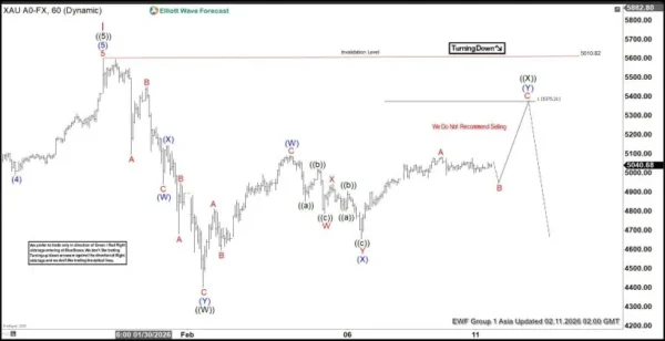 ทองคำ (XAUUSD) แตะระดับสูงสุดตลอดกาลที่ 5,610.8 ดอลลาร์ในวันที่ 29 มกราคม 2026 ถือเป็นการสิ้นสุดคลื่นที่ 1 นับตั้งแต่นั้นเป็นต้นมา โลหะก็ได้ปรับแก้วงจรที่ใหญ่ขึ้นซึ่งเริ่มตั้งแต่ระดับต่ำสุดในเดือนกันยายน 2022 โดยเผยออกมาภายในคลื่น II การปรับฐานกำลังพัฒนาเป็นโครงสร้าง Double Three Elliott Wave ซึ่งสะท้อนถึงการปรับราคาที่ซับซ้อน