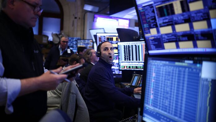 เทรดเดอร์ทำงานบนพื้นตลาดหลักทรัพย์นิวยอร์ก (NYSE) ก่อนระฆังปิดในนิวยอร์กในวันที่ 24 เมษายน 2026