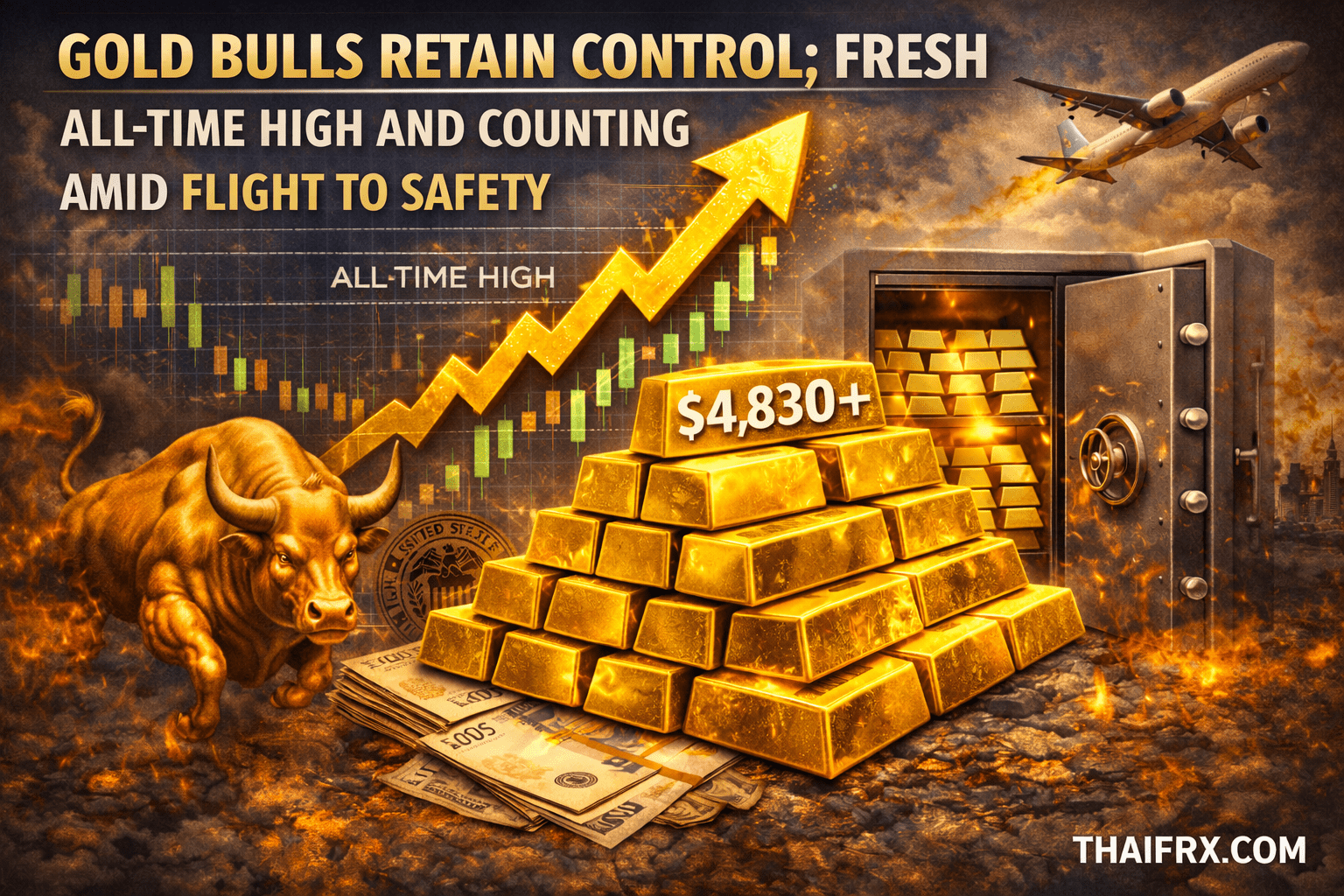 สรุปสถานการณ์ราคาทองคำ (XAU/USD) ประจำวันที่ 21 มกราคม 2569 ซึ่งฝั่งกระทิงยังคงเป็นผู้ควบคุมตลาดอย่างเบ็ดเสร็จ (Bulls retain control) โดยราคาทะยานขึ้นทำจุดสูงสุดใหม่ตลอดกาลอย่างต่อเนื่อง ท่ามกลางการแห่ซื้อสินทรัพย์ปลอดภัย ดังนี้ครับ: