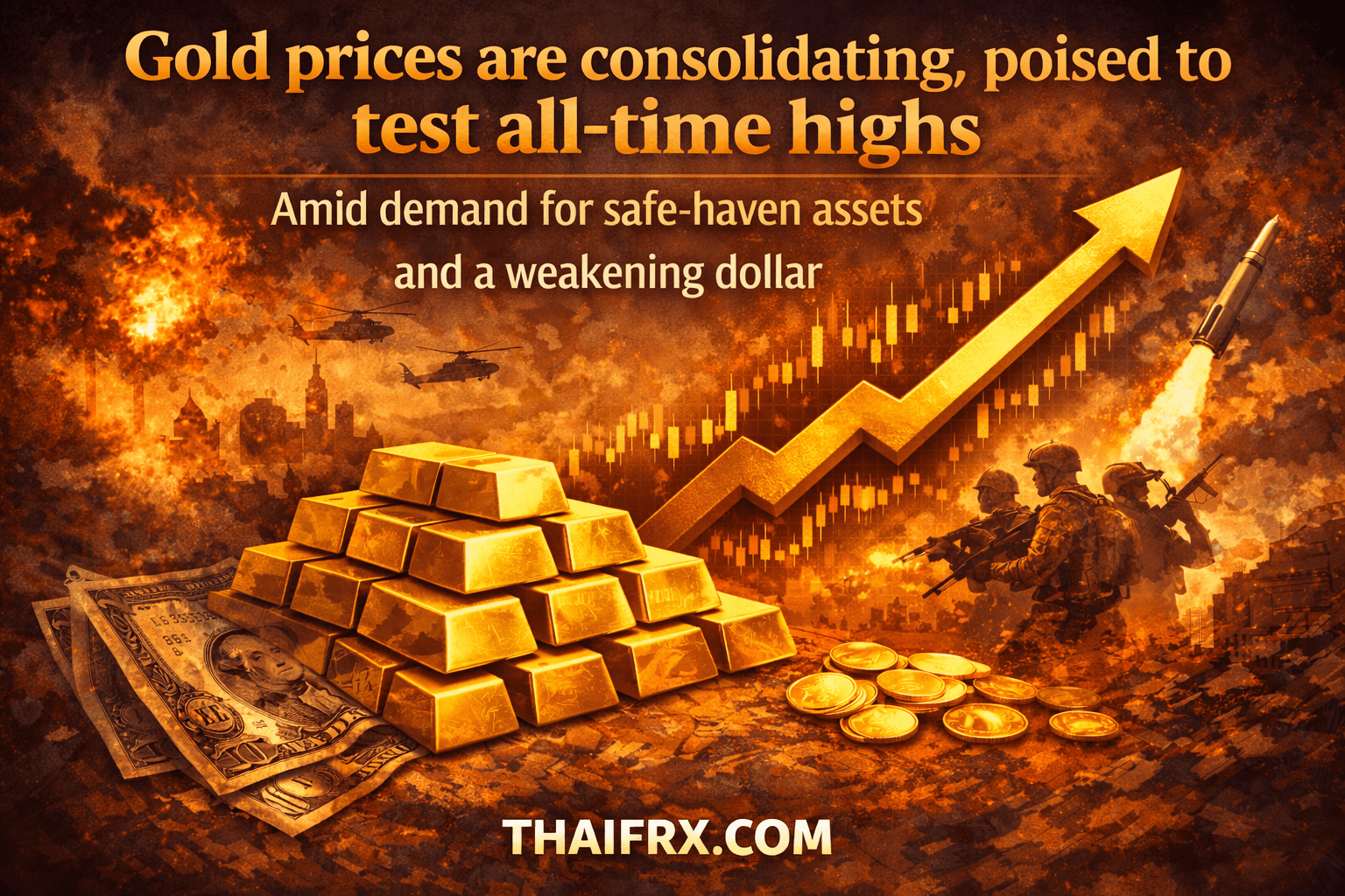 ราคาทองคำ กำลังสะสมพลัง รอพุ่งทดสอบระดับสูงสุดเป็นประวัติการณ์ ท่ามกลางความต้องการสินทรัพย์ปลอดภัย การอ่อนค่าของดอลลาร์