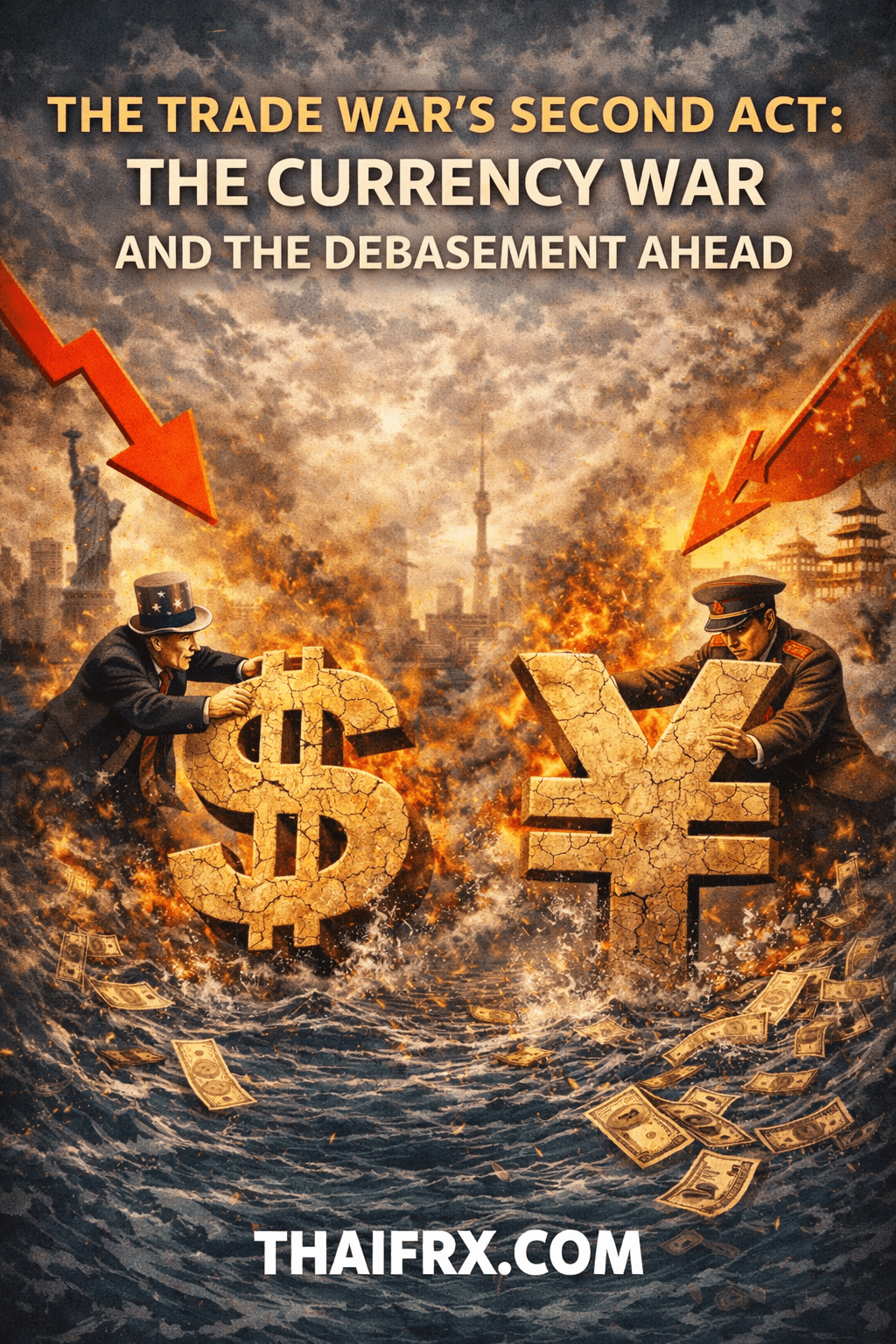 The Second Act: คือการทำให้ค่าเงินดอลลาร์อ่อนค่าลง (Debasement) เพื่อบีบให้การนำเข้าน้อยลงโดยอัตโนมัติ และทำให้สินค้าส่งออกของสหรัฐฯ แข่งขันได้มากขึ้น