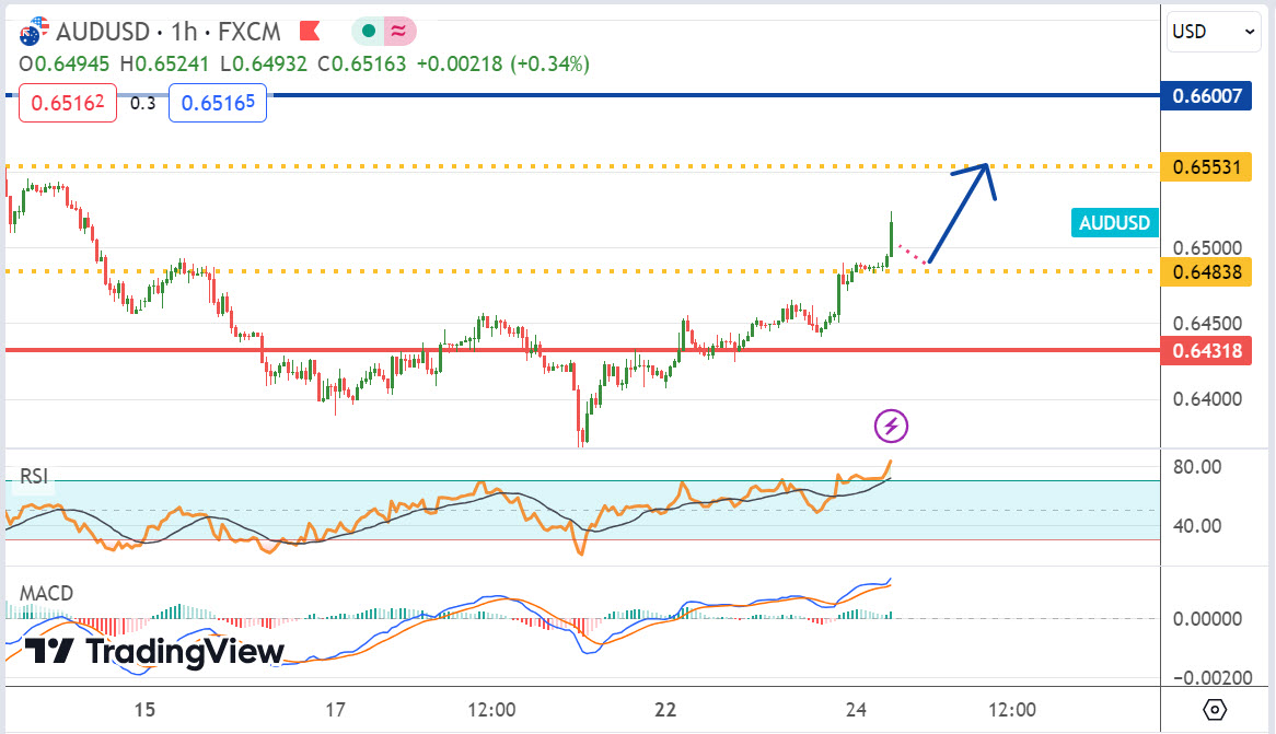 จุดทำกำไร AUDUSD : 0.6520 , 0.6540 , 0.6560