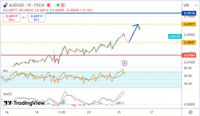 จุดทำกำไร AUDUSD : 0.6880 , 0.6900 , 0.6920
