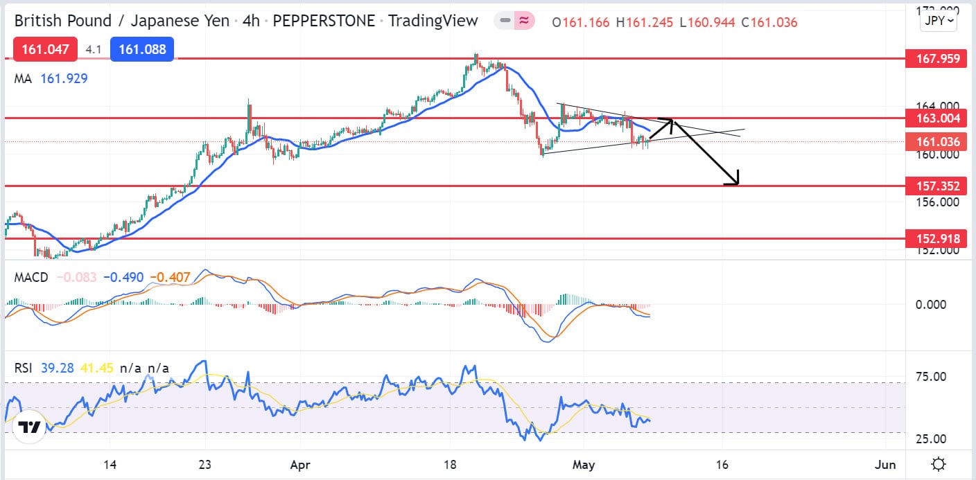 วิเคราะห์ทิศทางและแนวโน้มคู่เงิน #GBPJPY : มีโอกาสร่วงสู่ 159.50
