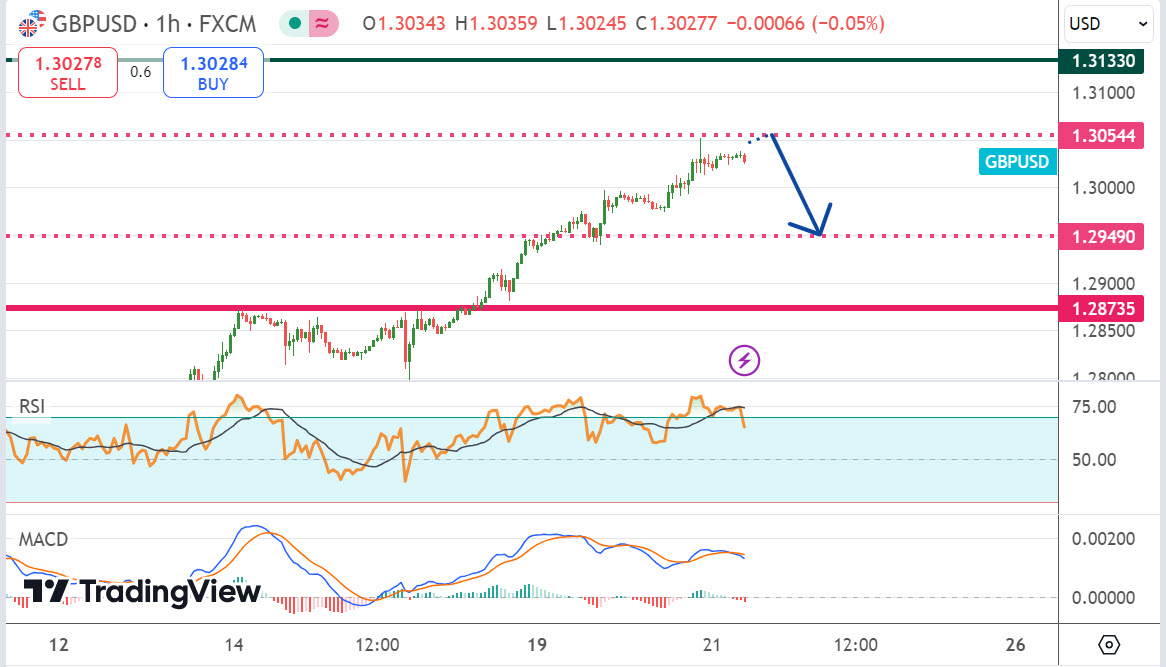 วิเคราะห์ทิศทางและแนวโน้ม #GBP/USD วันนี้ : มีโอกาสร่วงสู่ 1.3000
