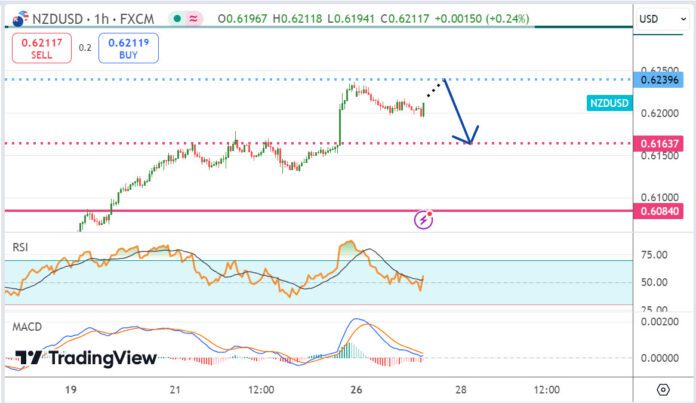 จุดทำกำไร NZDUSD : 0.6220 , 0.6200 , 0.6180