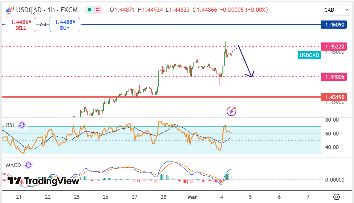 วิเคราะห์คู่เงิน USDCAD ประจำวันที่ 4 มีนาคม 2568