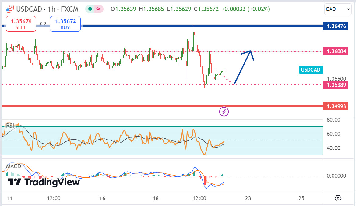 จุดทำกำไร USDCAD : 1.3560 , 1.3580 , 1.3600