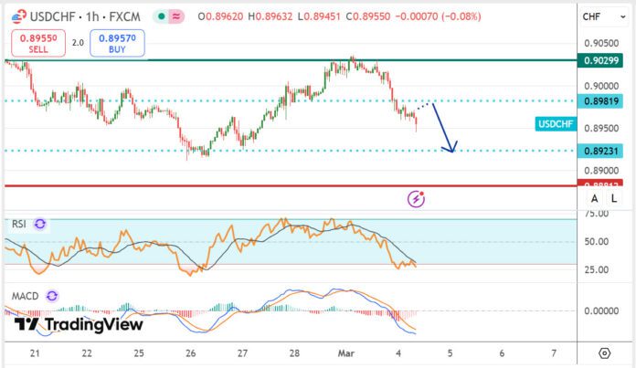 วิเคราะห์คู่เงิน USDCHF ประจำวันที่ 4 มีนาคม 2568