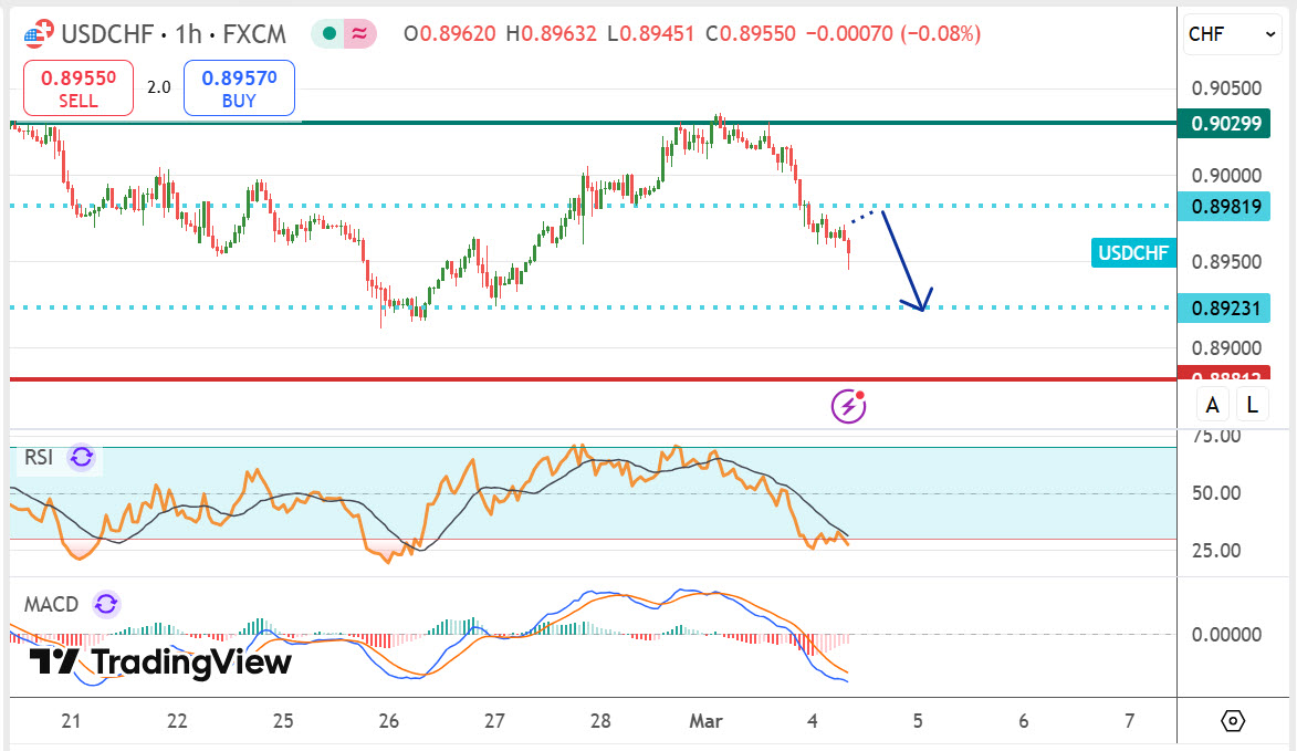 วิเคราะห์คู่เงิน USDCHF ประจำวันที 4 มีนาคม 2568