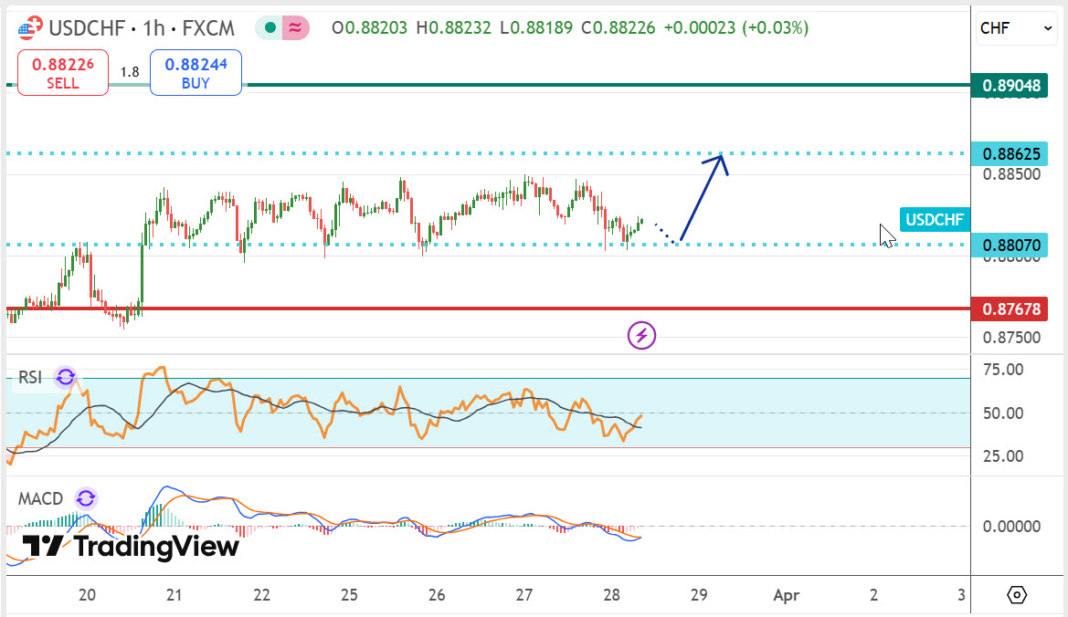 วิเคราะห์คู่เงิน USDCHF ประจำวันที 28 มีนาคม 2568