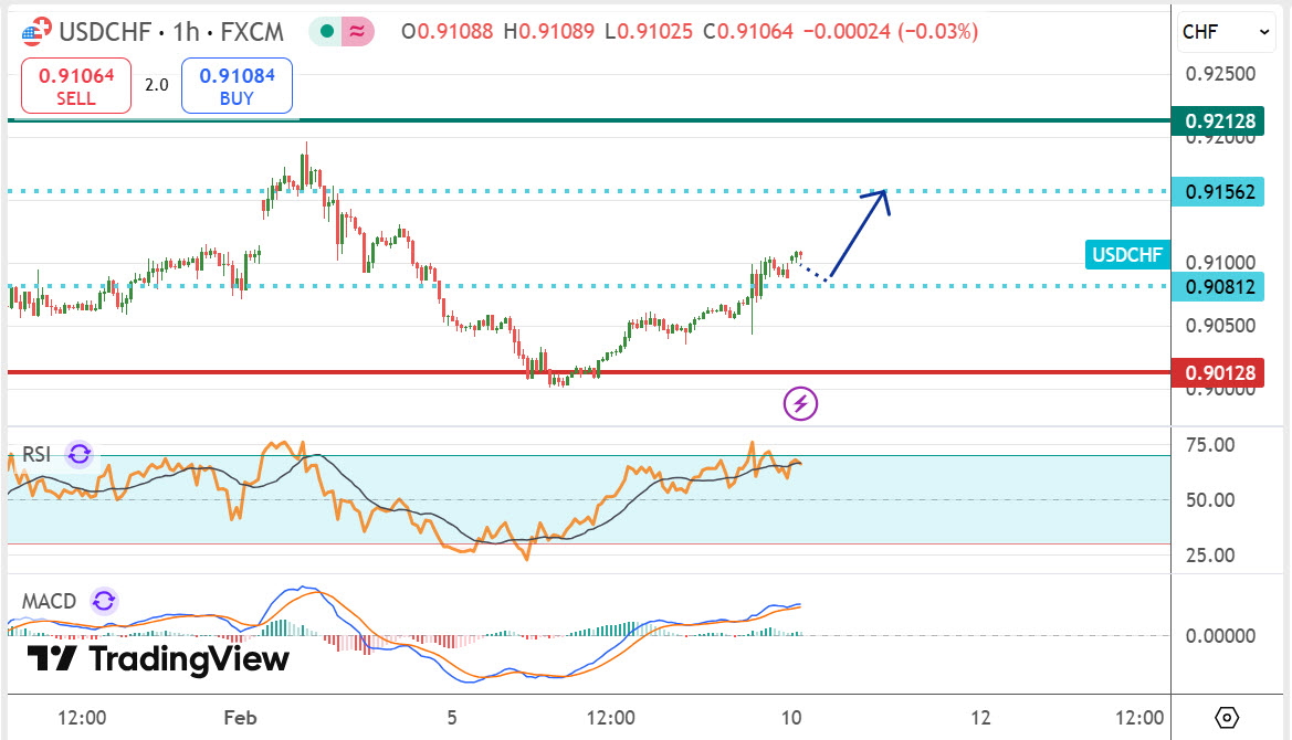 วิเคราะห์คู่เงิน USDCHF ประจำวันที 10 กุมภาพันธ์ 2568