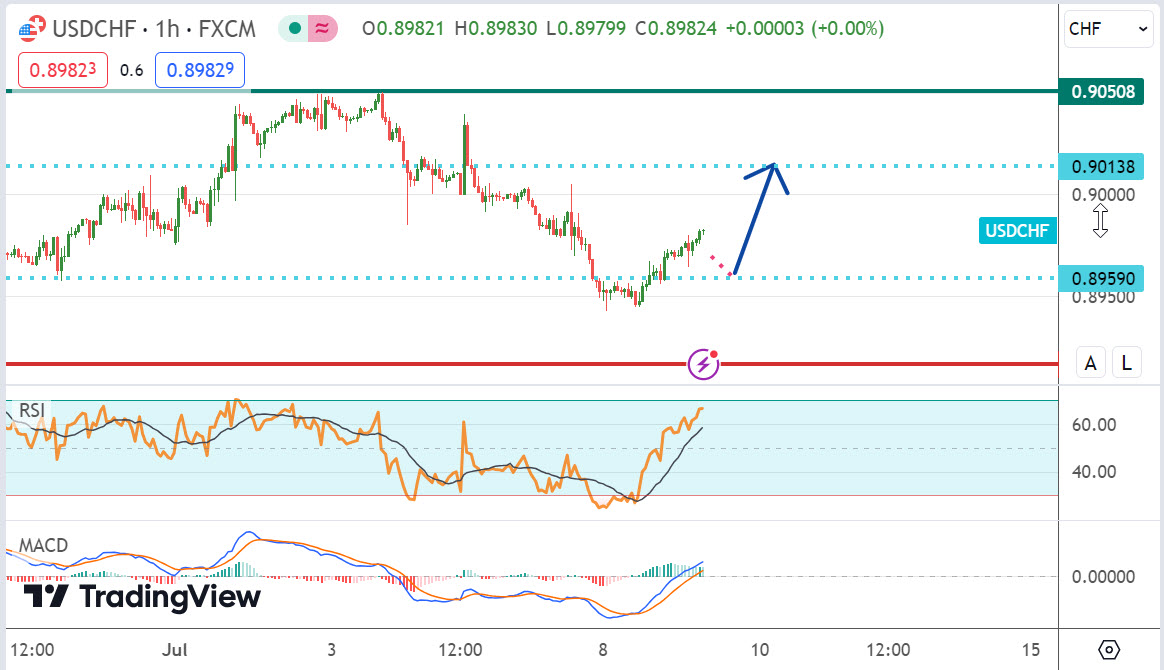 วิเคราะห์ทิศทางและแนวโน้มคู่เงิน #USDCHF : มีโอกาสพุ่งสู่ 0.9010