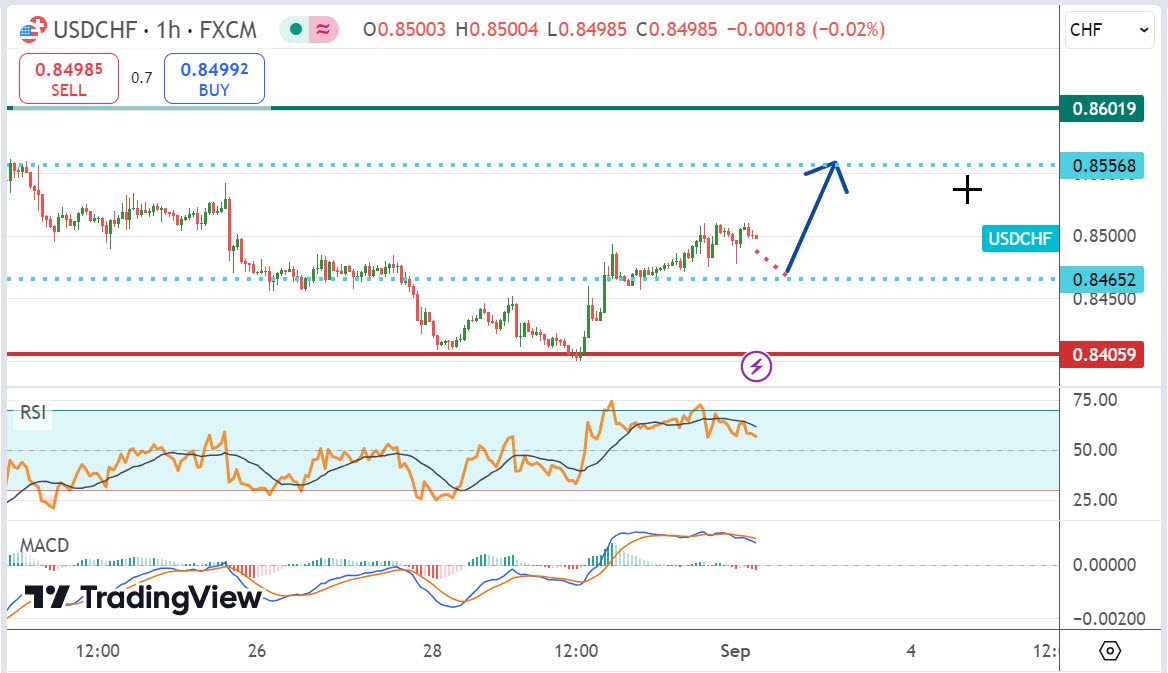 จุดทำกำไร USDCHF : 0.8500 , 0.8520 , 0.8540