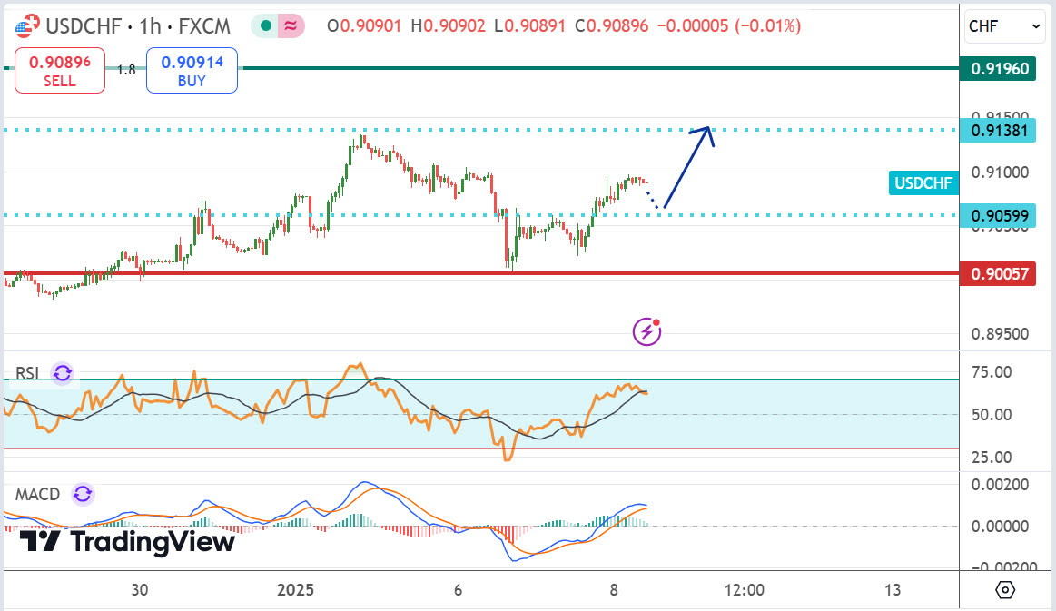 วิเคราะห์คู่เงิน USDCHF ประจำวันที 8 มกราคม 2568