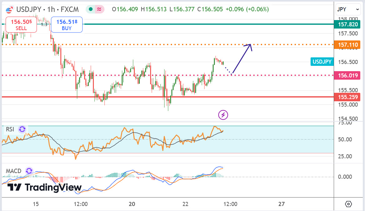 จุดทำกำไร USDJPY : 15650 , 156.80 , 157.00