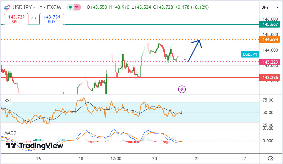 จุดทำกำไร USDJPY : 143.60 , 143.80 , 144.00