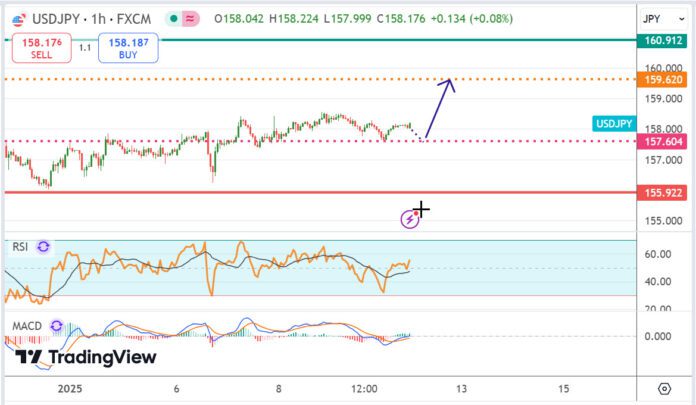 จุดทำกำไร USDJPY : 158.30 , 158.50 , 158.70