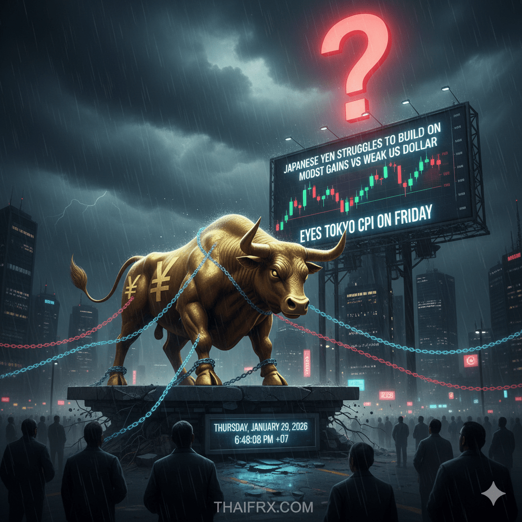 วิเคราะห์สถานการณ์ค่าเงินเยน (JPY) ประจำวันที่ 29 มกราคม 2569 ซึ่งกำลังอยู่ในสภาวะ “อ่อนแอและขาดแรงส่ง” (Struggles to build on gains) แม้เงินดอลลาร์จะอ่อนค่าลงทั่วโลกก็ตามครับ