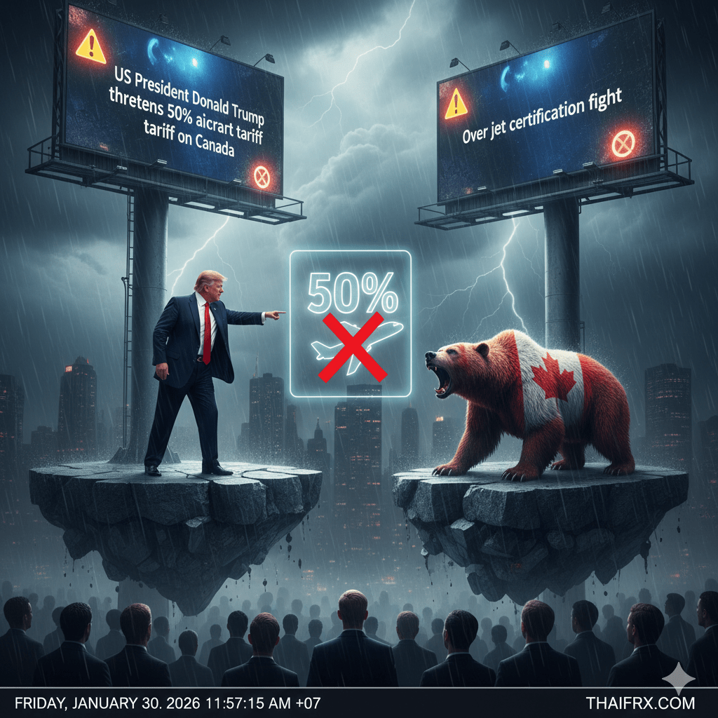 วิเคราะห์สถานการณ์ล่าสุดเช้าวันนี้ (30 มกราคม 2569) กรณีประธานาธิบดีโดนัลด์ ทรัมป์ ประกาศขู่เก็บภาษีนำเข้าเครื่องบินจากแคนาดาสูงถึง 50% ซึ่งถือเป็นการยกระดับสงครามการค้า (Trade War) ครั้งสำคัญ โดยมีรายละเอียดที่น่าสนใจดังนี้ครับ: