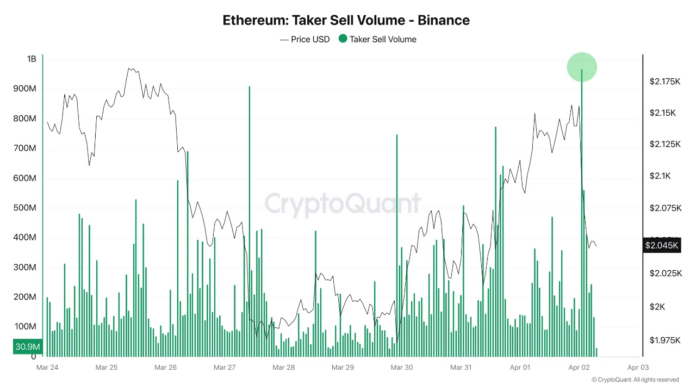 Ethereum Taker ขายปริมาณ Binance | ที่มา: CryptoQuant