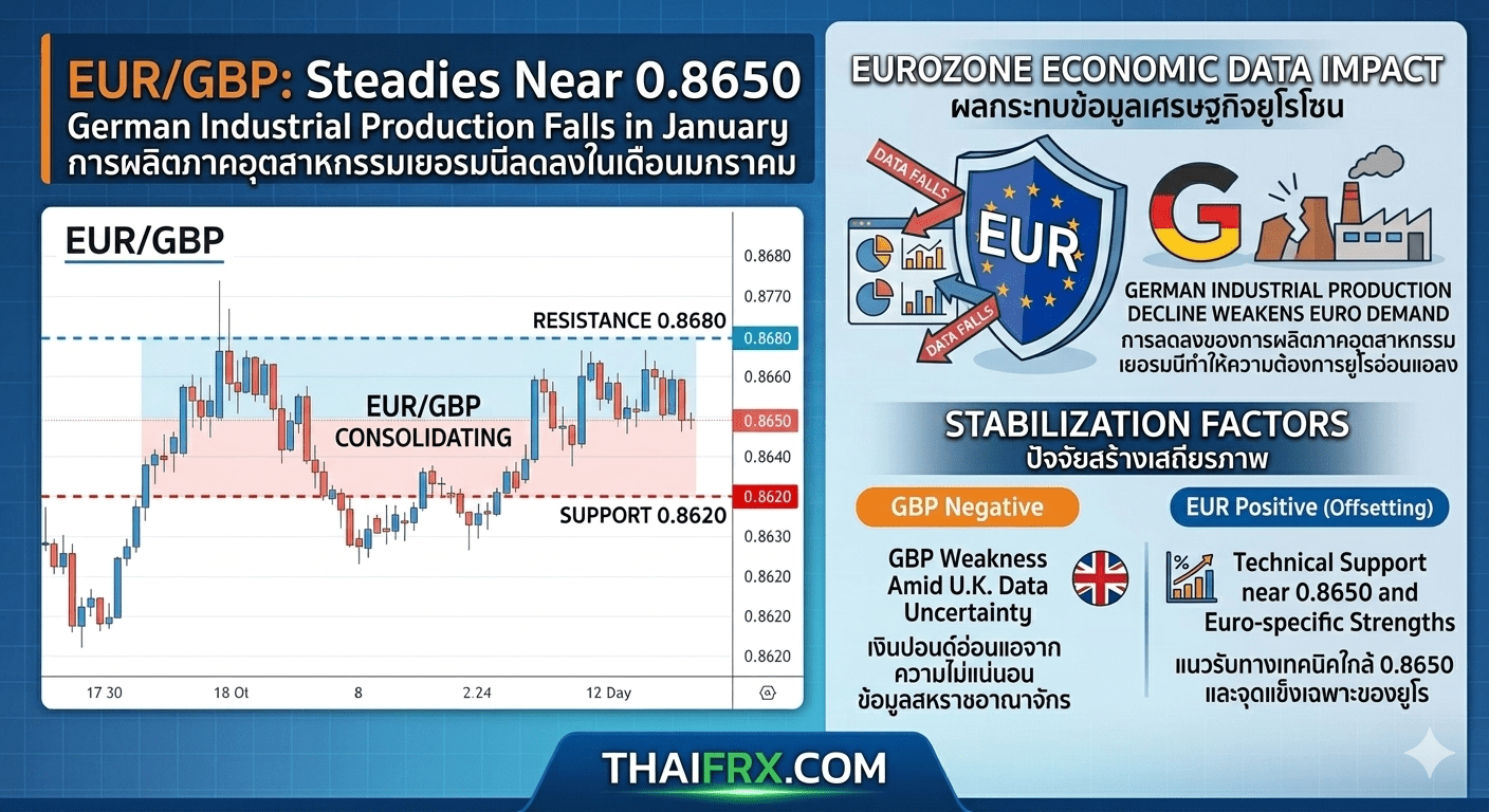 EUR/GBP ทรงตัวใกล้ 0.8650 หลังการผลิตภาคอุตสาหกรรมเยอรมนีร่วงเกินคาดในเดือนมกราคม