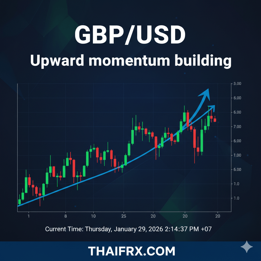 วิเคราะห์แนวโน้มคู่เงิน GBP/USD ประจำวันที่ 29 มกราคม 2569 ซึ่งกำลังแสดงสัญญาณแรงส่งขาขึ้นอย่างต่อเนื่อง (Upward Momentum Building) จนเข้าใกล้ระดับสำคัญครับ