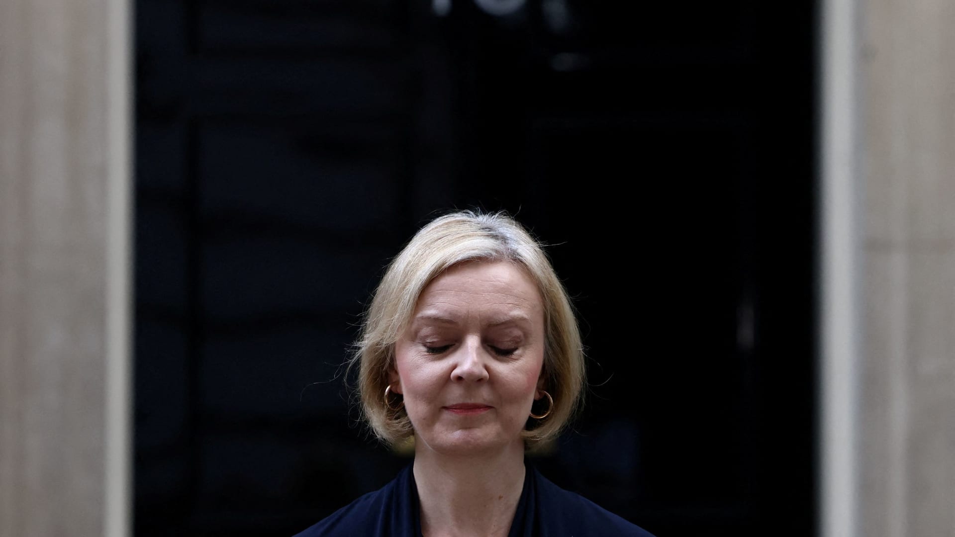 ลิซ ทรัส นายกรัฐมนตรีอังกฤษ ประกาศลาออก นอกบ้านเลขที่ 10 ดาวนิงสตรีท ลอนดอน สหราชอาณาจักร เมื่อวันที่ 20 ตุลาคม 2565