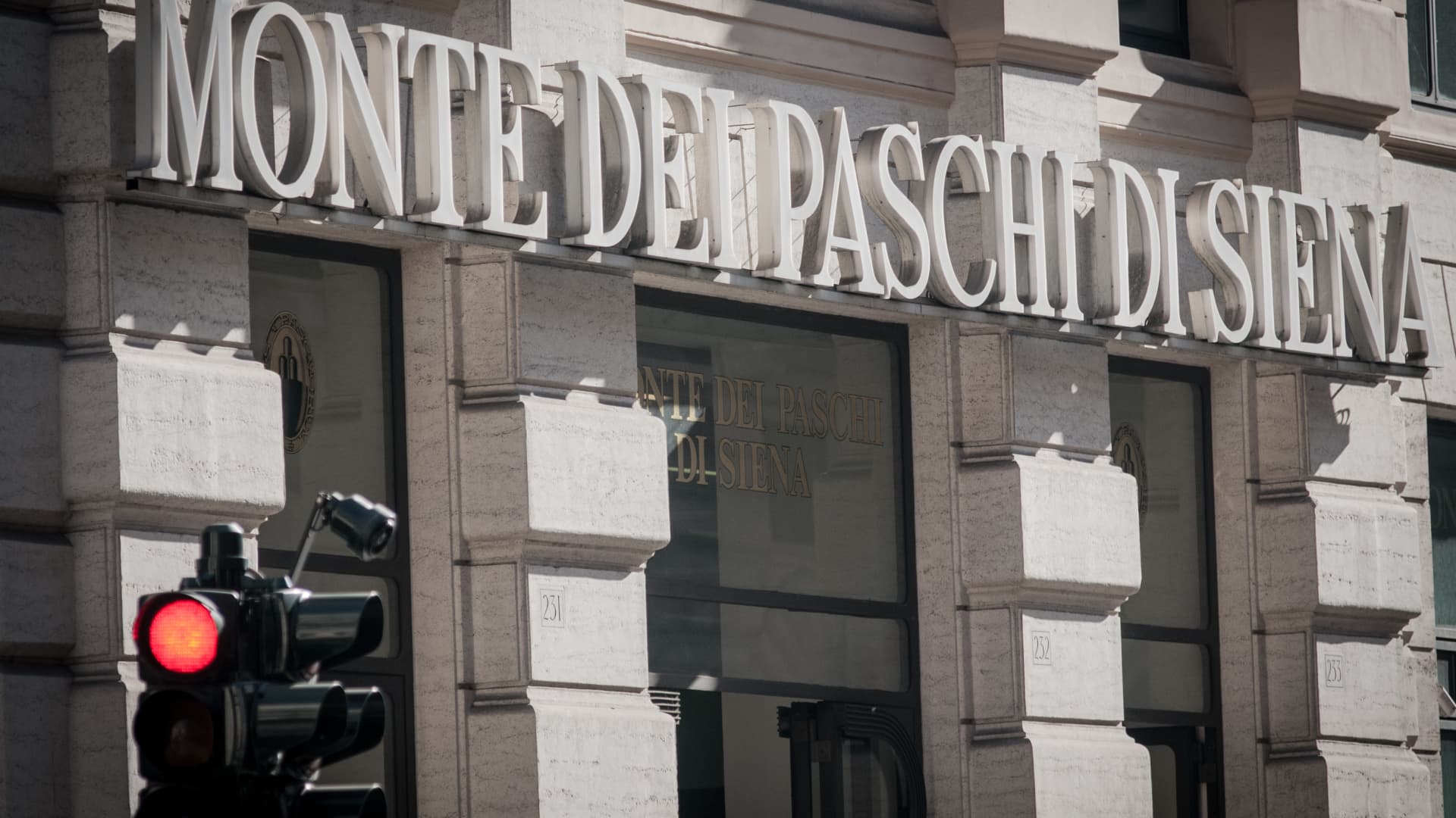 มุมมองของสาขาของธนาคารอิตาลี Monte Deo Paschi ในกรุงโรม