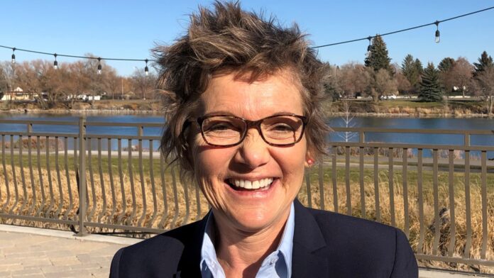 แมรี เดลี ประธานธนาคารกลางสหรัฐแห่งซานฟรานซิสโก โพสท่าหลังจากกล่าวสุนทรพจน์เกี่ยวกับแนวโน้มเศรษฐกิจสหรัฐฯ ที่ไอดาโฮฟอลส์ รัฐไอดาโฮ สหรัฐอเมริกา เมื่อวันที่ 12 พฤศจิกายน 2018