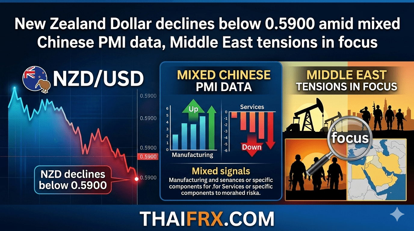 คู่เงิน NZD/USD ปรับตัวลดลงหลุดระดับ 0.5900 ลงมาเคลื่อนไหวแถว 0.5875 ในช่วงการซื้อขายที่เอเชียวันนี้ (4 มีนาคม 2026) โดยได้รับแรงกดดันจากข้อมูลเศรษฐกิจจีนที่ออกมาแบบผสมผสาน (Mixed) และความกังวลที่เพิ่มขึ้นจากวิกฤตการณ์ในตะวันออกกลางครับ