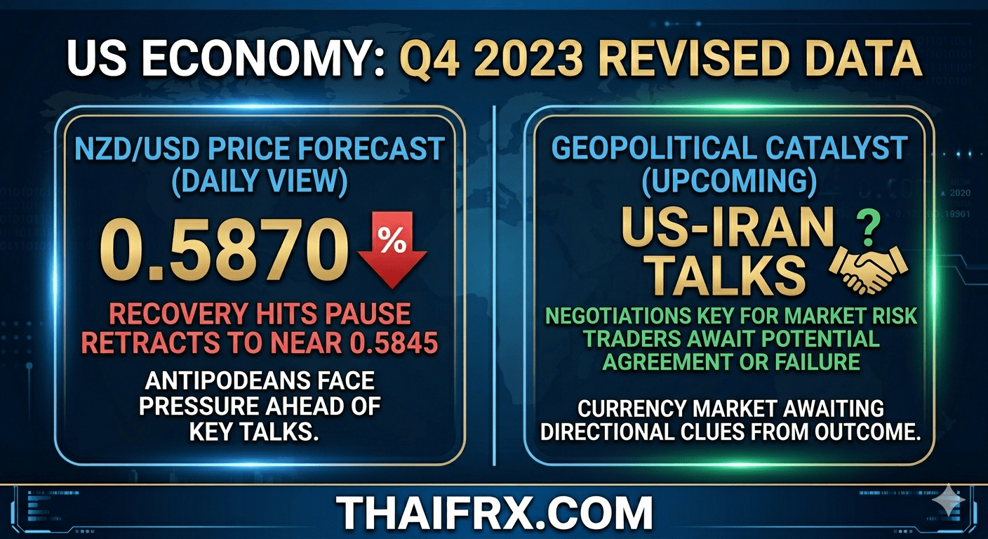 หยุดสถิติขาขึ้น: หลังจากปรับตัวขึ้นติดต่อกัน 4 วัน NZD/USD เริ่มมีการย่อตัวทางเทคนิคลงมาอยู่ที่ 0.5845 (ลดลง 0.25%) เนื่องจากนักลงทุนเริ่มระมัดระวังการถือครองสินทรัพย์เสี่ยงก่อนการเจรจาหยุดยิงถาวร ณ กรุงอิสลามาบัด ในวันเสาร์นี้