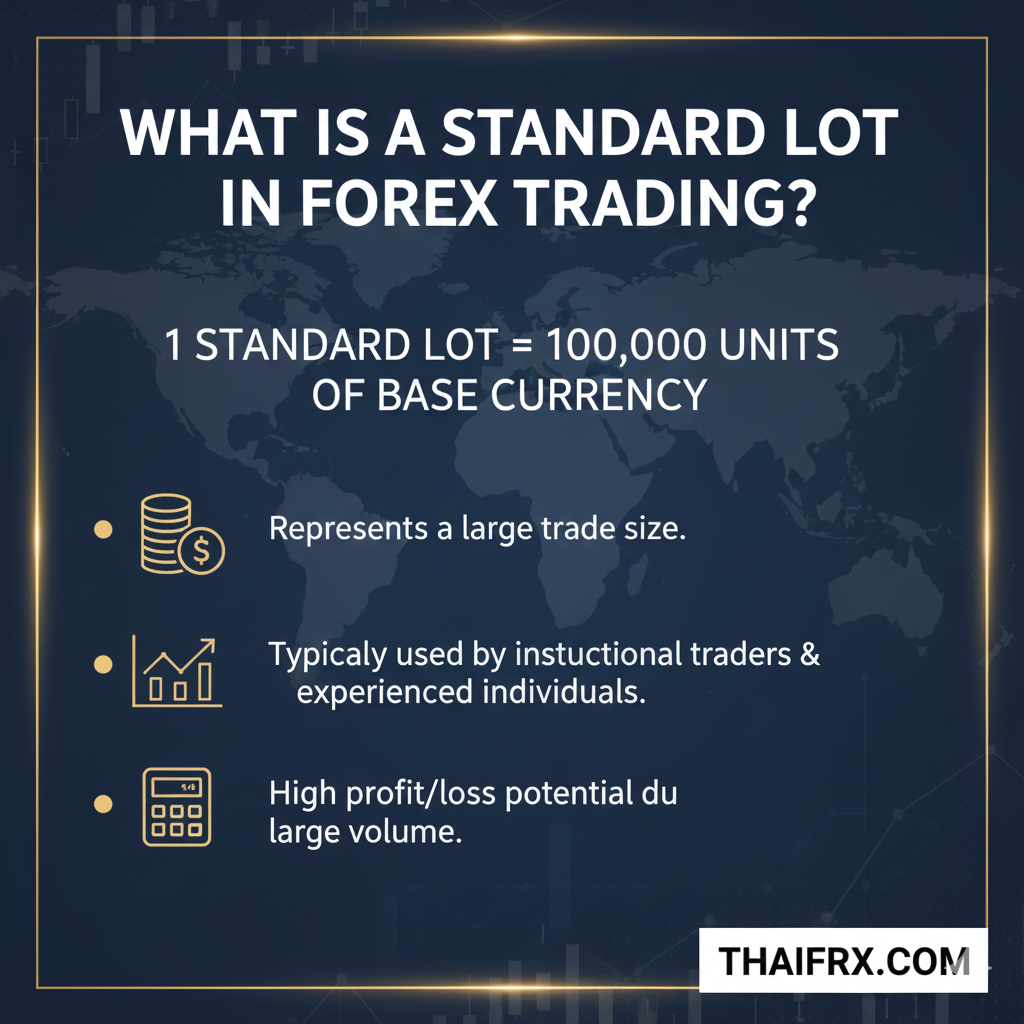 • นิยาม: 1 Standard Lot เท่ากับ 100,000 หน่วย ของสกุลเงินหลัก (Base Currency)