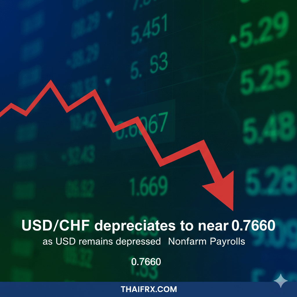USD/CHF ปรับตัวลดลง (Depreciate) ใกล้ระดับ 0.7660 ซึ่งเป็นระดับที่ต่ำที่สุดในรอบหลายเดือน