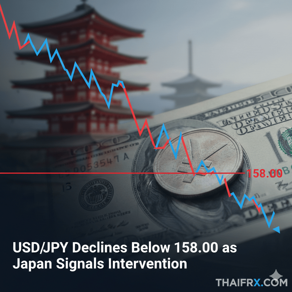 เงินเยนแข็งค่าขึ้น (USD/JPY ปรับตัวลดลง): ในช่วงเช้าวันจันทร์ที่ตลาดเอเชีย ค่าเงินดอลลาร์เมื่อเทียบกับเงินเยน (USD/JPY) อ่อนค่าลงมาอยู่ที่ประมาณ 157.80 (จากที่เคยยืนเหนือ 158.00) เนื่องจากตลาดกังวลว่าทางการญี่ปุ่นจะเข้ามาแทรกแซงค่าเงิน