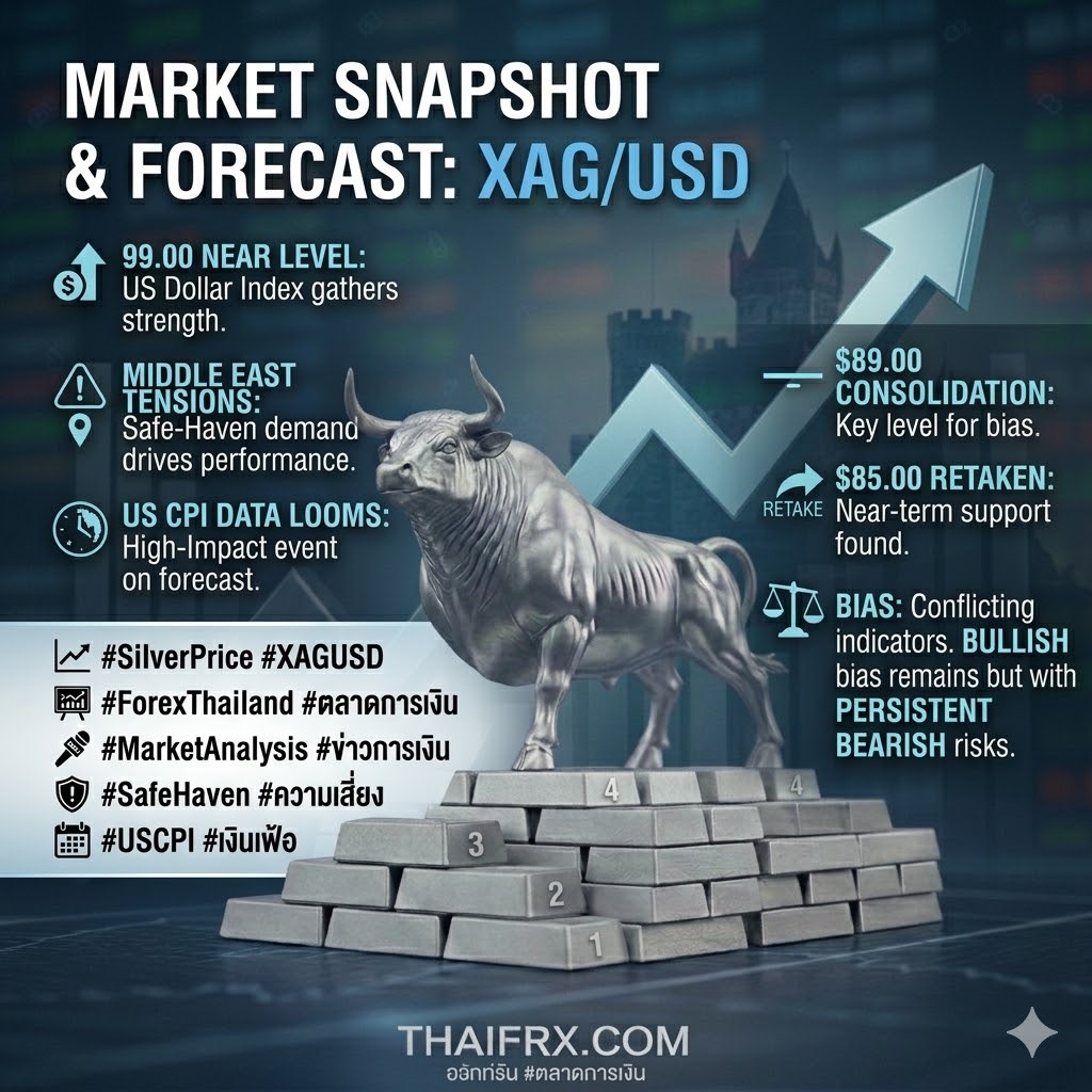 ราคาโลหะเงิน (Silver) เริ่มเห็นแรงซื้อคืน (Rebound) ในช่วงเปิดตลาดวันจันทร์ โดยพยายามกลับมายืนเหนือระดับจิตวิทยาที่ $81.00 หลังจากสัปดาห์ที่ผ่านมาได้รับผลกระทบจากแรงเทขายทำกำไร (Profit Taking) เมื่อความกังวลเรื่องสงครามในตะวันออกกลางเริ่มถูกซึมซับเข้าสู่ราคาไปแล้วบางส่วนครับ